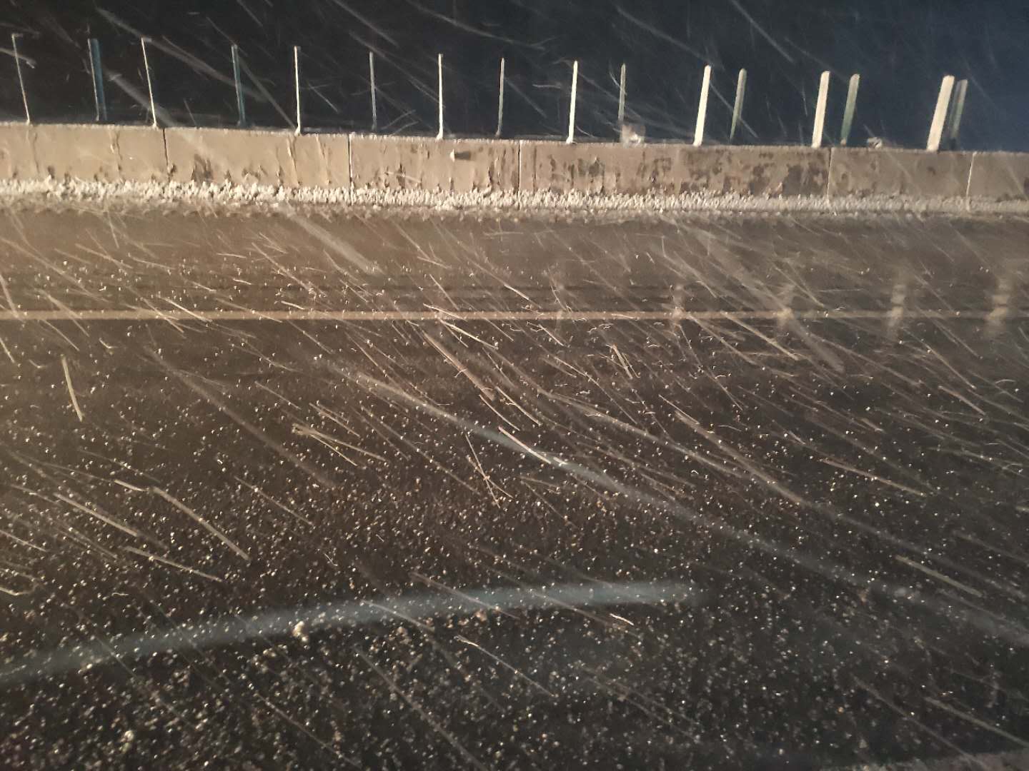 020年2月27日夜间,四大队巡逻警力发现辖区高速公路桥面、涵洞有积雪,民警按照统筹推进新型冠状肺炎疫情防控和经济社会发展工作部署会议上的重要讲话精神与大队领导指示,立即与有关部门进行联系,开始进行上路撒布融雪剂及清除桥面结冰。同时利用公路上的电子显示屏不间断播放安全标语,并组织警力加强巡逻,利用警车喊话让过往的司机就近下站。