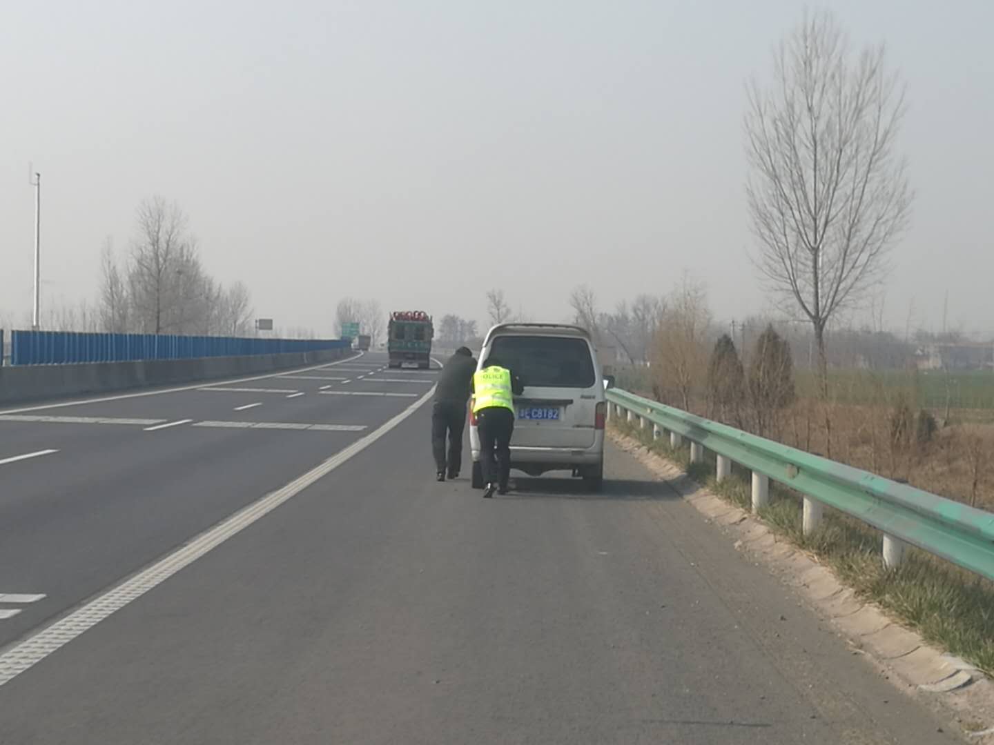 3.5雷锋纪念日已经过去,但是雷锋精神一直都在。3月7日下午15时30分许,安阳市高速交警一大队民警带领辅警巡逻至大广高速滑县段1865公里处时,有一名男子站在车旁的应急车道内,着急的向警车方向挥手,当时路面车流量巨大,车辆呼啸而过,情况十分危急,民警见此情况立即靠边停车询问情况。此时的驾驶员神情慌乱说自己的车行至此处突然熄火了,任凭怎么打火都没反应,身边的车流呼啸而过,自己着急的直跺脚。民警听后边安抚驾驶员的情绪边同驾驶员一起将车辆推至较为安全的港湾内,在车后方150米处摆放好锥筒后,告知驾驶员要站到护栏外等待维修人员。