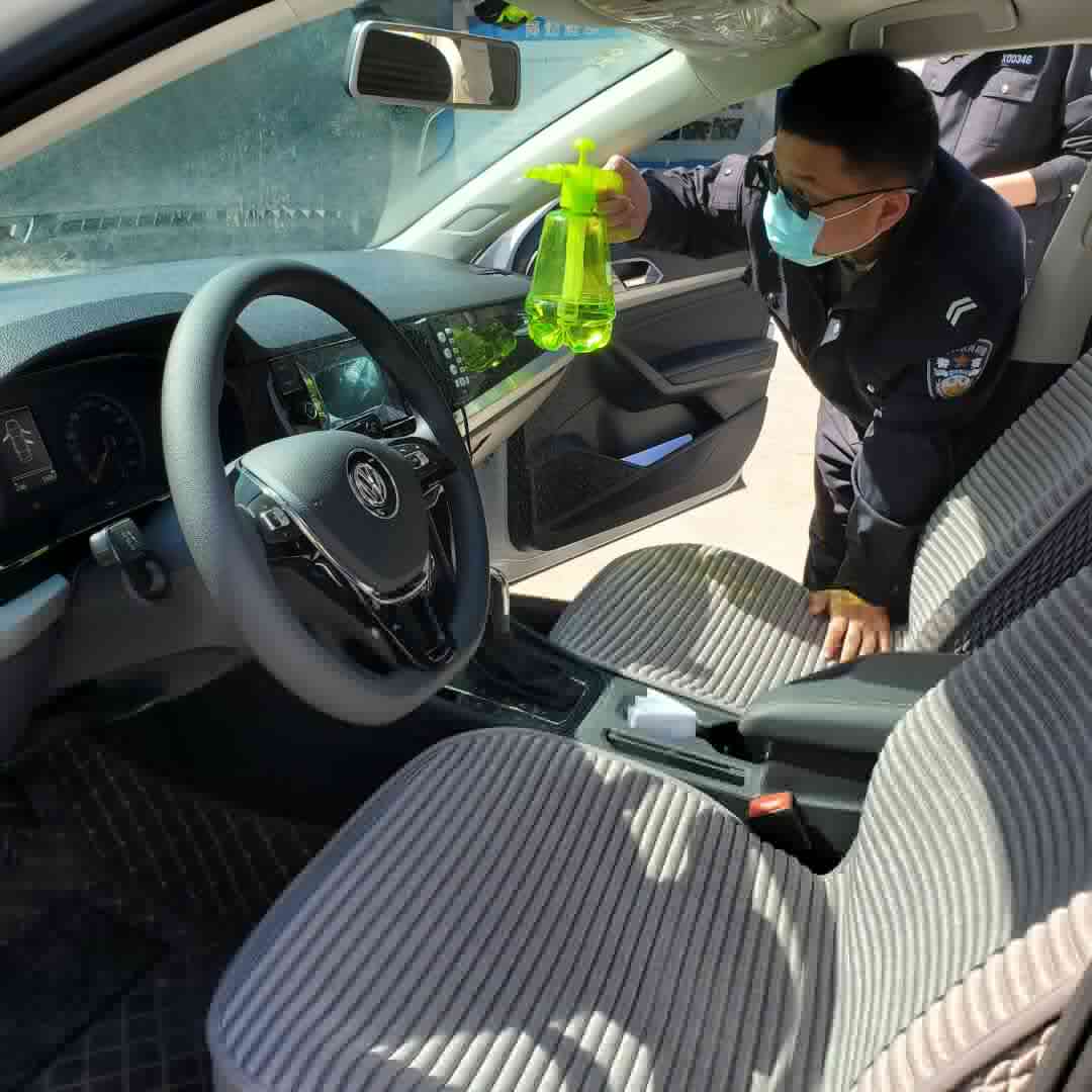首先大队民警、辅警对车辆外部进行了认真清洗,对车辆内部的方向盘、把手、工作台等用消毒液进行了擦拭,随后又在车内喷洒了消毒液,每天都在路上奔波布满灰尘的警车瞬间焕然一新。最后民警对车上喊话器、警灯、警报器、警用器械、反光锥筒、急救装备、灭火器等装备一一进行检查,对检查中发现的问题,立即进行整改,对损坏、不足的警用装备进行登记,并及时补充完整,切实做到防患于未然。
