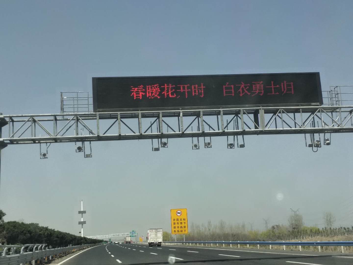 3月19日上午7时,河南国家紧急医学救援队郑州大学第一附属医院医疗设备车队从武汉启程返回郑州,经京港澳高速过境我市。河南省公安厅高速交警总队、许昌市公安局专题部署车队护航任务,作为河南高速交警、路政千里接力的第一站,许昌高速交警、路政部门高度重视,迅速行动,以“最高的礼遇、最深的敬意、最佳的形象、最顺畅的通行、最安全的保障”,护送载誉而归的援鄂战疫最美逆行英雄凯旋。