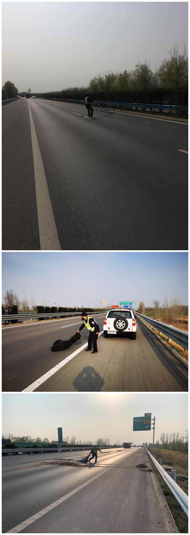 在3月22日、23日,开封高速支队民警在辖区巡逻时,发现路面掉落有纱布、废旧梯子、大袋沙子等危险障碍物。此时,防疫攻坚战已进入战斗的尾声,高速公路车多流量大,为保障群众复工途中安全畅通,民警立即靠边停车,在确认自身安全后飞奔向障碍物,并将其清至应急车道外,及时消除安全隐患,创造复工平安大道。