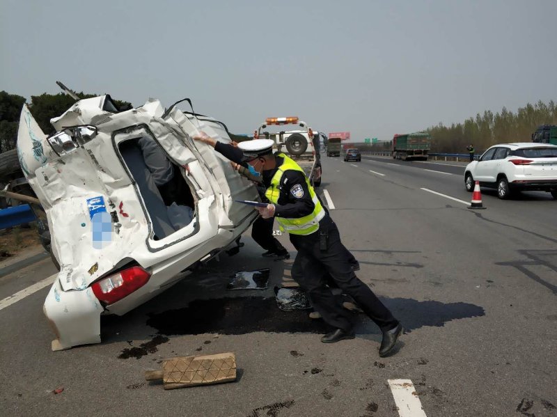 2020年4月7日下午13时许,刘先生驾驶豫A03***小型客车在京港澳高速公路507KM附近第一车道高速行驶,快到南林高速路口,意识到错过岔路口,直接快速变道到第四车道,被在第四车道行驶的冀A49***半挂货车撞上,小客车转了个圈后被撞回第一车道护栏板上,刘先生被撞伤。事故发生后,河南省高速交警总队四支队民警杨中华、韩志豪快速赶到现场,及时救治伤员,疏导路面交通,合力将倾倒的小客车推正,用时1个小时将事故现场清理完毕。