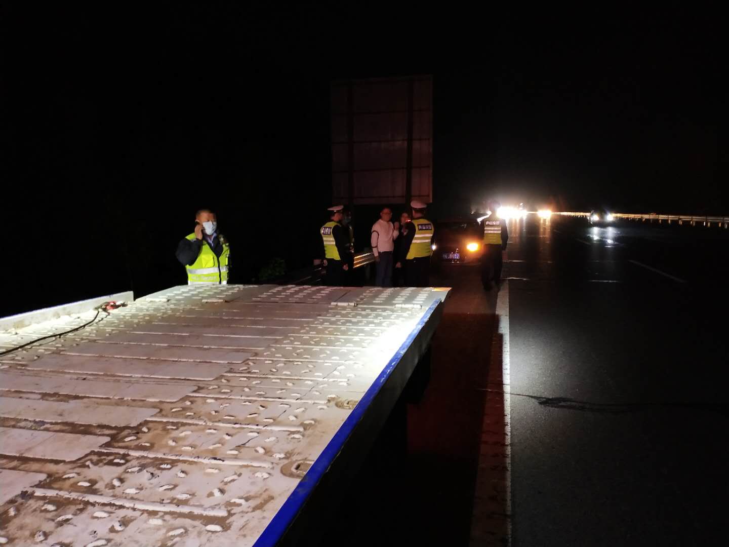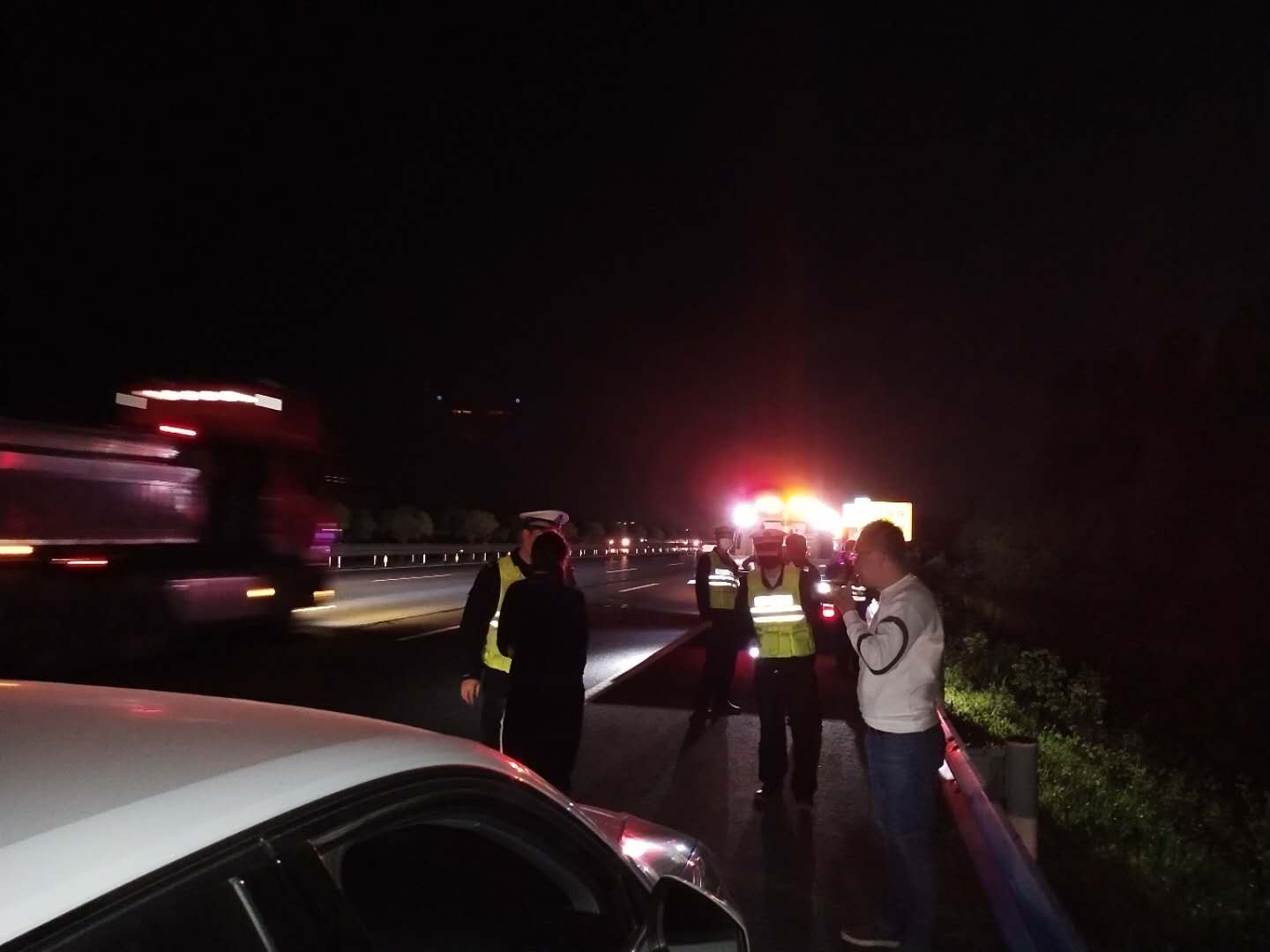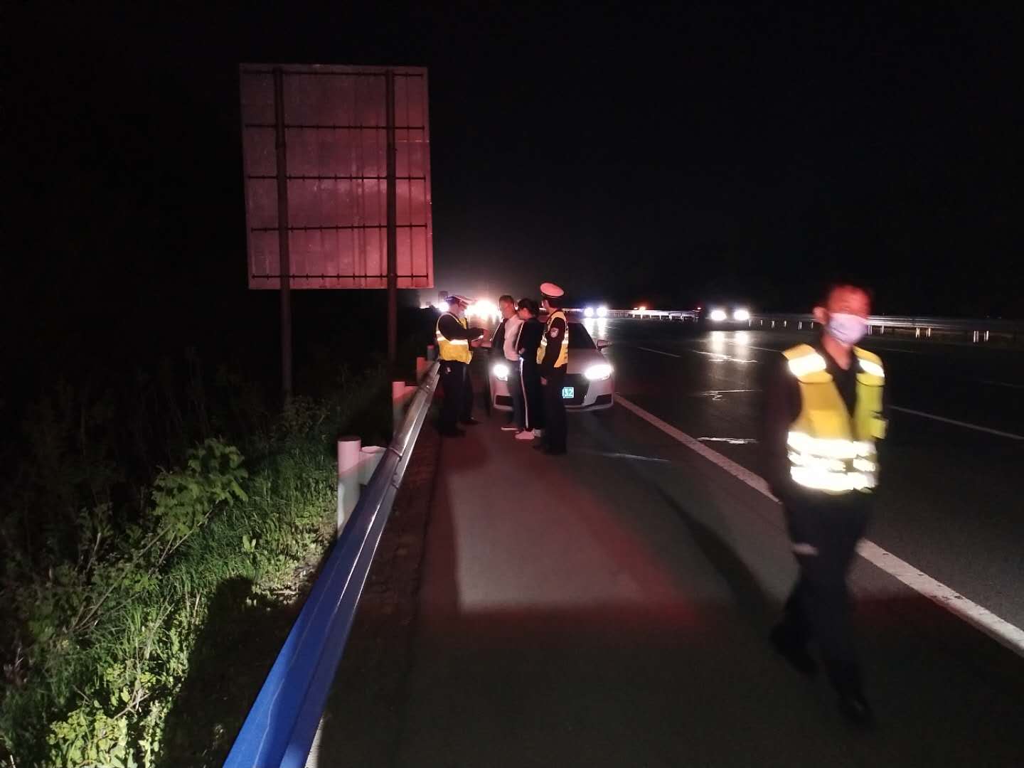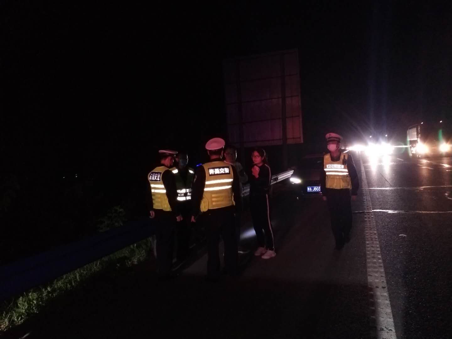 2020年4月17日,在河南省公安厅全省高速公路交通安全整治“百日行动”专项治理行动的第二次全省统一行动中,许昌市第一高速公路执勤大队大队长孙良民亲自动员,安排部署大队全体民警开展统一行动,大队教导员连攀峰亲自带队上路开展宣传巡逻查缉行动。4月17日傍晚20点许,许昌市公安局交通管理支队第一高速公路执勤大队教导员连攀峰带领民警由南向北巡逻至京港澳高速745KM处时,发现一辆白色奥迪轿车停在路边,巡逻民警立即停车上前查看。经询问,该车驾驶员为冯某与妻子自郑州返回平顶山老家,驾驶车辆时未发现车辆油表亮起红灯,行驶至京港澳高速745KM处时,车辆突然熄火,无法启动,就在两人慌乱不知所措时,高速巡逻民警及时赶到了他们车前。了解情况后民警迅速在来车方向摆放反光锥设置警示区,并告知冯某两人撤离到高速护栏外,又呼叫高速救援拖车赶来将该车拖至加油站。冯某对高速民警的热心帮助连声致谢:“谢谢民警同志!我下次开车一定及时检查车况,注意交通安全。”
