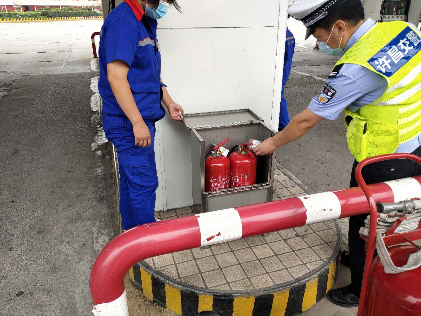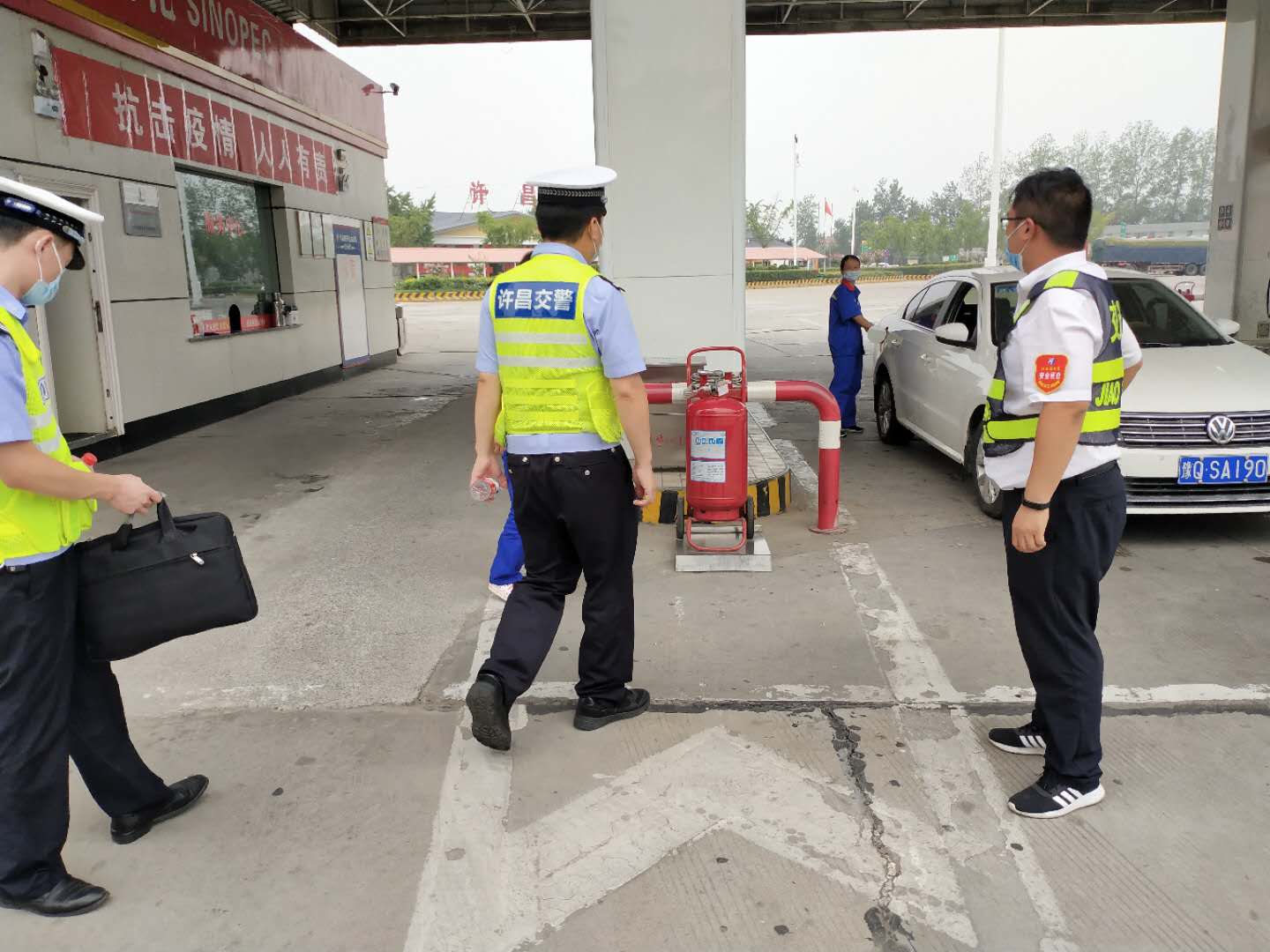2020年7月10日上午,许昌市第一高速公路执勤大队民警王金鹏带队前往辖区唯一一个服务区,许昌服务区进行安全督导与检查,要求其全面摸排来往服务区的危化品生产运输车辆总体数量、运输流向、通行路线、联系方式等基本情况, 并对服务区的消防设备,危险应急机制等展开了认真仔细的检查与督导。