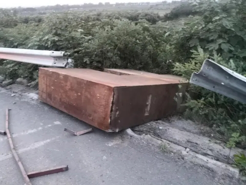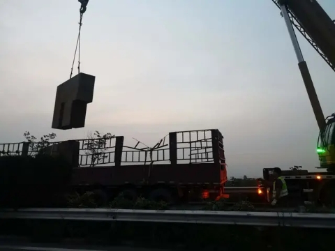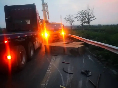 据河南省公安厅高速交警总队七支队事故大队大队长党国军介绍,7月29日18时40分许,洛阳市孟津县驾驶员韩某驾驶豫CC38**/豫CCK2**号半挂货车由河北返回洛阳,车上所载货物为配重钢锭,途经连霍高速公路会盟站北半幅出口匝道时,因弯道车速过快,车上所载四块钢锭没有捆扎牢靠,发生货物滑移,撞坏车厢栏板,总共四块抛落路面三块,车辆和高速公路附属设施损失近万元。事故发生后,高速交警迅速调集抢险施救人员及时将该车辆和货物清理完毕。