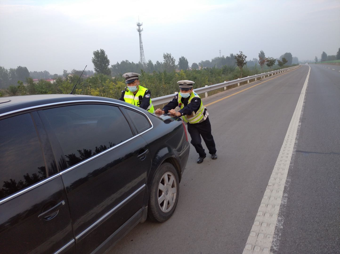 10月15日下午15时10分许,安阳市高速交警一大队民警带领辅警巡逻至南林高速安南段78公里处时,有一辆小型轿车停在应急车道内,有一名男子正焦急的围着车转,看到警车的他,着急的向警车方向挥手,当时路面车流量较大,车辆呼啸而过,情况十分危急,民警见此情况立即靠边停车询问情况。此时的驾驶员神情慌乱说自己的车行至此处突然熄火了,任凭怎么打火都没反应,身边的车流呼啸而过,自己着急的直转圈。民警听后边安抚驾驶员的情绪边同驾驶员一起将车辆推至较为安全的港湾内,在车后方150米处摆放好锥筒后,告知驾驶员要站到护栏外等待维修人员。