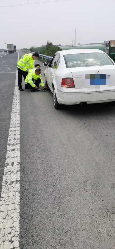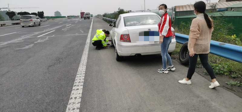 民警通过询问了解到该车辆发生爆胎无法行驶,车上只有两名女士,考虑到她们更换备胎并不熟练,并且高速路上车流量大、车速快。多停留一分就多一分危险,民警当机立断,马上协助驾驶员开始更换备胎,以最快的速度完成了换胎操作。司机和乘客感动的握住民警的手,再三表示感谢。