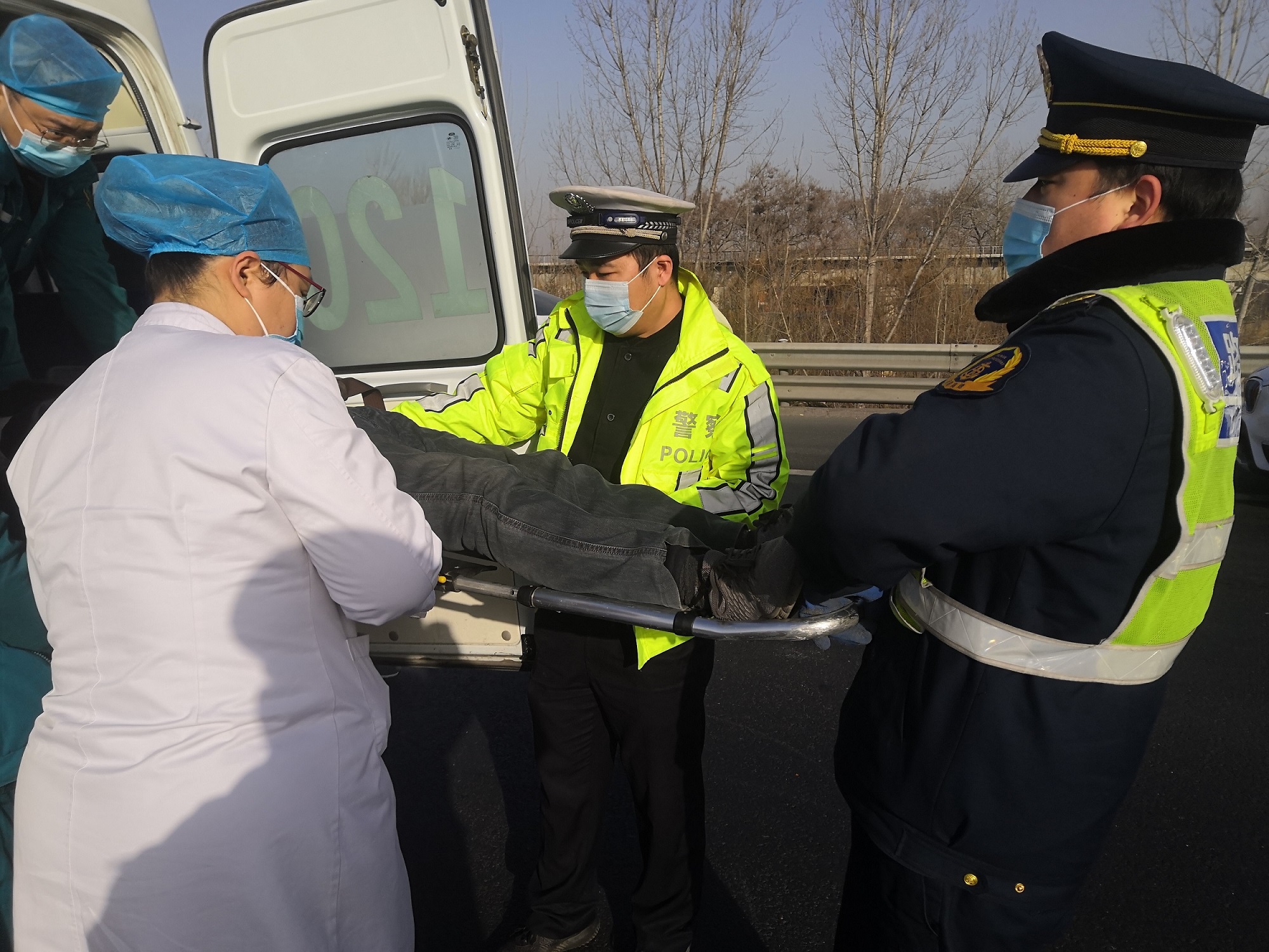到达现场后,民警看到一辆白色小型轿车撞击清扫作业车后停靠在高速公路超车道上,轿车驾驶室因碰撞严重变形,车内还有两名伤员被困。民警见状立即兵分两组,一组和路政队员一起合力救助被困伤员;另一组设置警示隔离区,指挥车辆提前减速变道通行,同时向医疗急救部门通报人员受伤情况。因轿车碰撞后车厢变形,车门锁死无法打开,民警击破车辆前挡风玻璃,将被困驾驶员从中救出,同时从内打开车门,将另一名副驾驶位置的伤员救出,此时医疗救护人员、车辆正好赶到,伤者随即被送往医院,由于送医及时,受伤两人伤情稳定,正在进一步治疗。