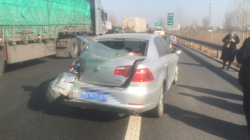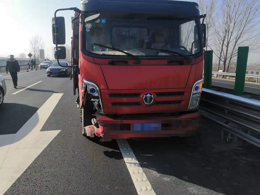2021年1月18日14时30分许,一辆轻型自卸货车行驶至盐洛高速701公里处时,由于与前车车距太近,刹车不及,与前方在同车道内正常行驶的小型轿车发生碰撞。