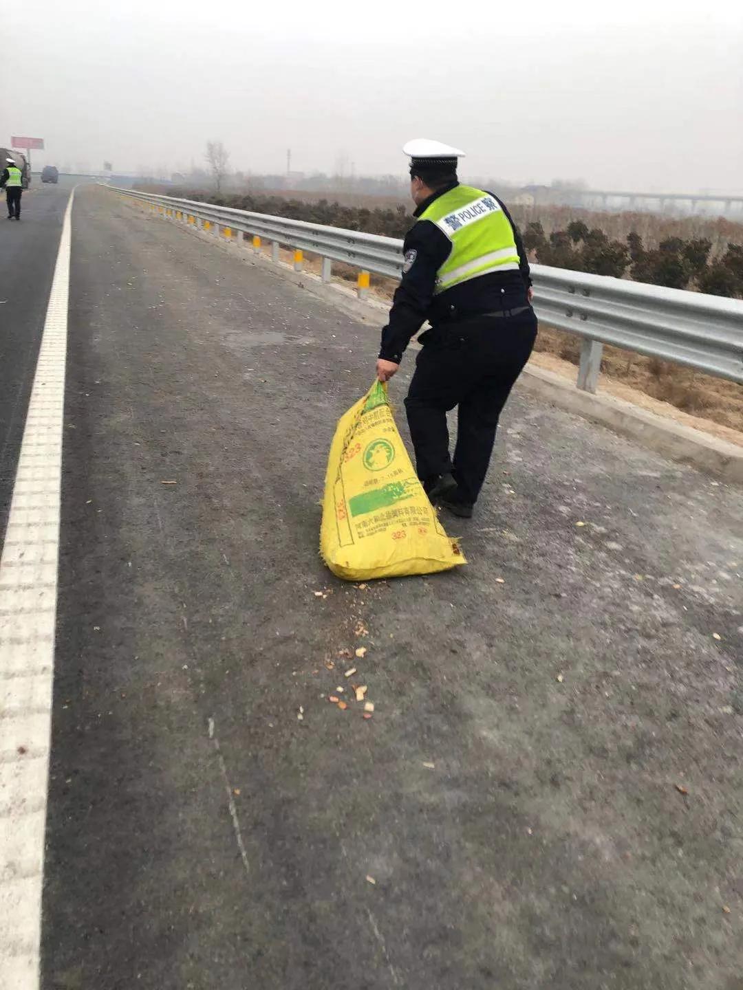 1月25日下午17时左右,开封高速支队民警在所管辖区内巡逻保通时,发现行车道路面有一袋掉落物,该物在路中间“静躺”,给过往车辆通行带来不便,并造成了一定的安全隐患。我队民警立即行动,提醒和指挥过往车辆注意减速避让,同时将路障迅速拾起丢到护栏外的边沟内,消除了安全隐患,避免了交通事故的发生,确保了道路交通安全畅通。