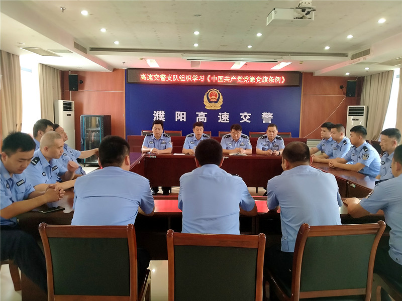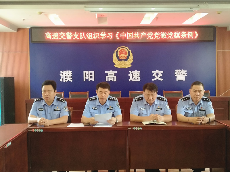 为深入开展党史学习教育,传承红色基因,汲取奋进力量,进一步锤炼党员干部政治品质,筑牢信仰之基,7月13日,濮阳高速交警支队组织全体党员民警学习了《中国共产党党徽党旗条例》,会议由支队负责人刘怀民主持。