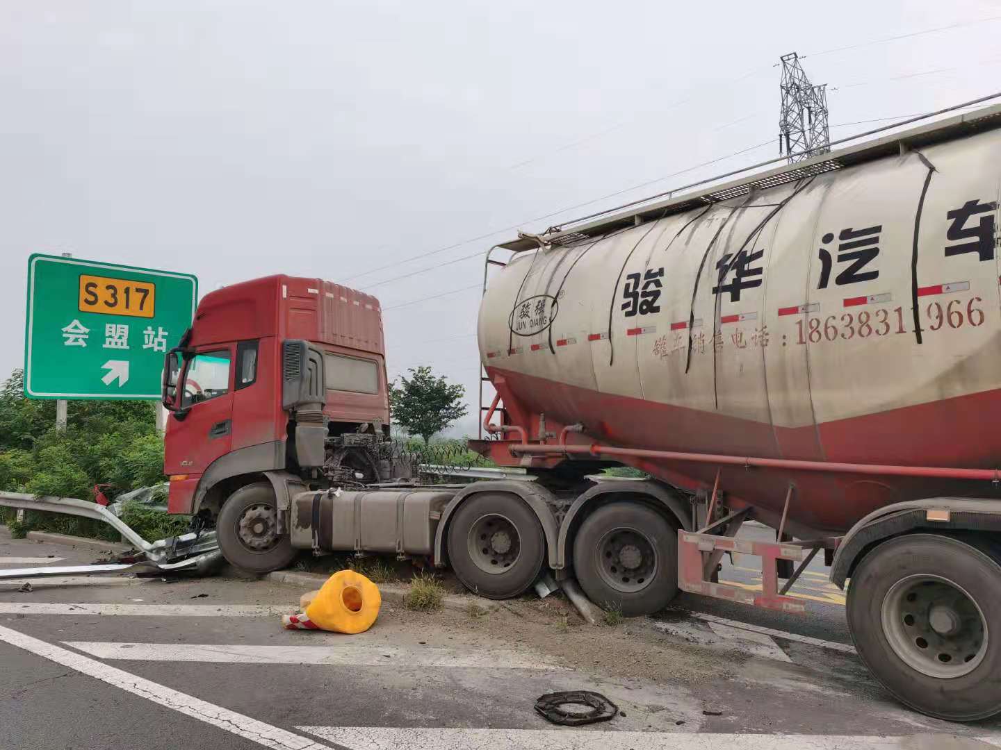 2021年8月11日早上六点五十分,河南省高速交警七支队指挥室接到报警,辖区连霍高速676公里北半幅发生一起半挂车撞护栏事故,车辆不能行驶。接到警情后,巡逻民警迅速赶往事故地点。