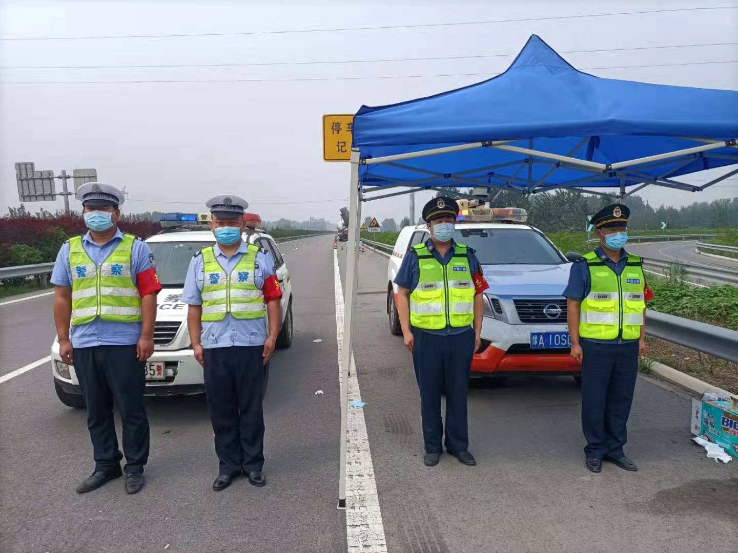 七月份以来,新冠疫情卷土重来,尉氏县庄头镇前曹村,后曹村,于家村,文家村,刘家村,孙庄村,田家村被列为高风险地区,尉氏县为整体管控区。高速支队二大队负责管辖的商登高速公路,东西贯穿尉氏县,驻地尉氏北站距离庄头镇5公里,防疫风险高。根据上级指示及大队实际情况,成立了尉氏北防疫战时党员先锋队,由大队长于江为突击队队长,党员赵龙、王震、侯帅帅为队员(非党员辅警郭秋峰、李晨阳积极参加)。