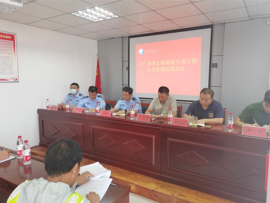 为应对即将到来的假期高峰,保障开封辖区高速公路畅通,减少事故发生,9月22日,开封高速交警支队史连成支队长、陈谢副支队长及郝洪涛教导员同路政、养护等单位负责人参加“大广高速公路路面专项工程安全保通培训会议”。