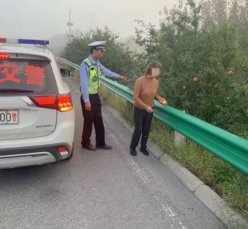 濮阳高速交警及时劝离横穿高速摘石榴女子