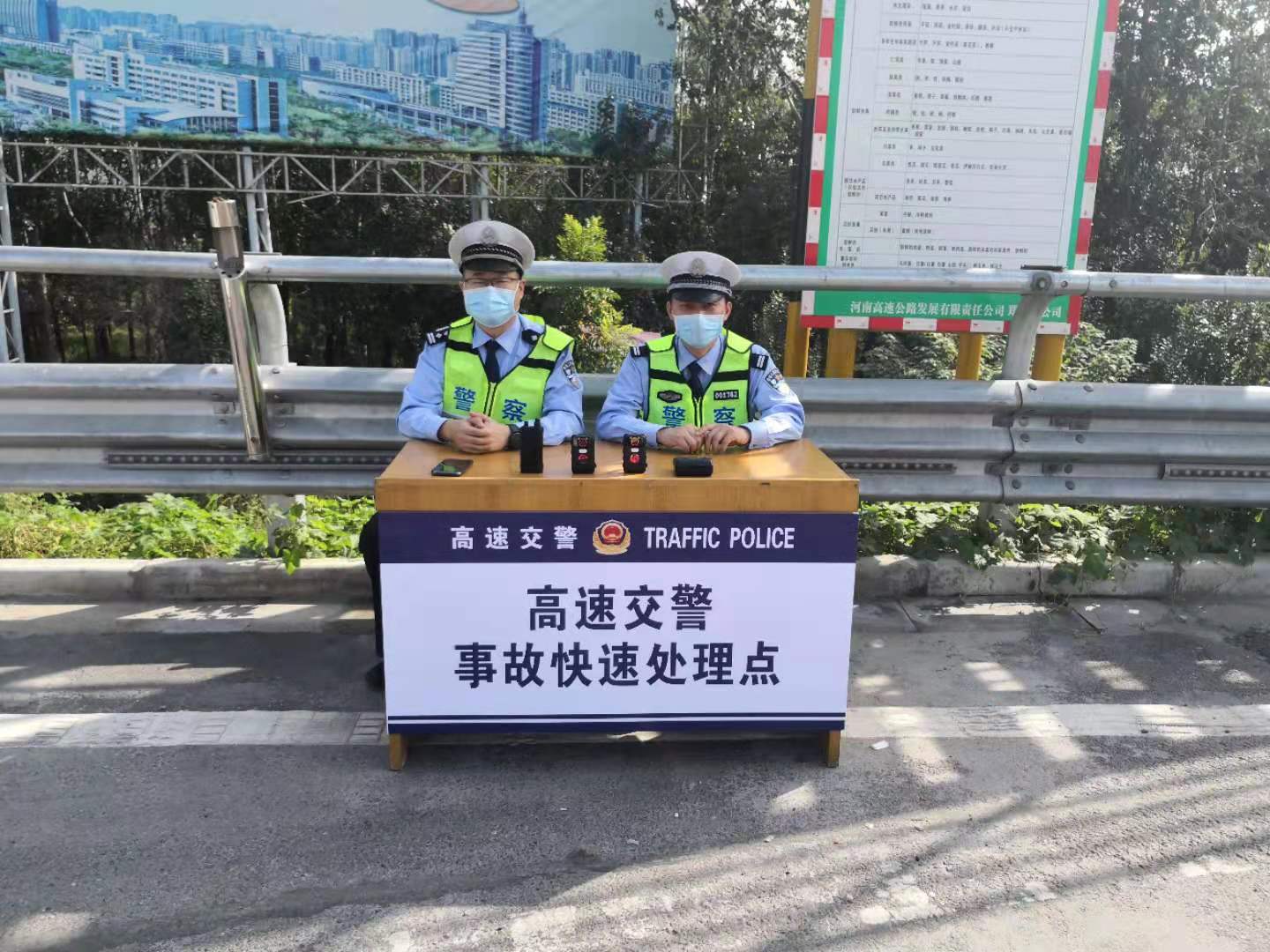 国庆节假期首日高峰,十支队在辖区巩义东站设置事故快速处理点,对人无伤、车可移的轻微交通事故,实现群众“零跑腿”快速处理、快速撤离,确保辖区道路畅通。十支队根据辖区高速公路特点,巩义段隧道多、坡道多、分道多容易发生事故地方采取定点执勤和重点巡逻的方式加强路面现场处置,并在前方巩义东站设立了临时事故快处快赔处理点,极大方便了群众。