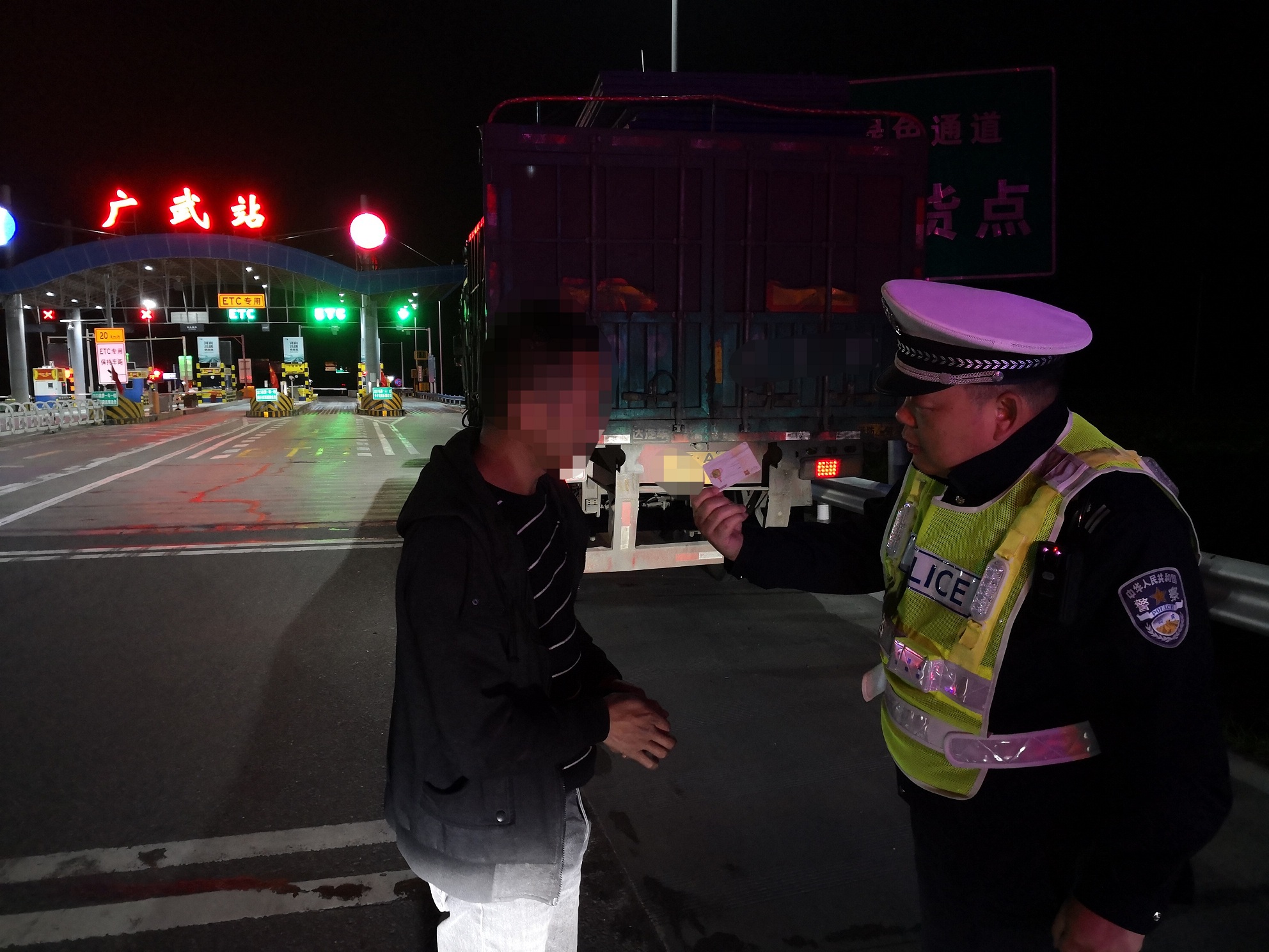 河南高速交警提醒驾驶员:货车在通行高速时要随时检查随车证件,如ETC卡、通行证、验货单等,如在行驶中发现有证件遗忘无法下站的情况,请驶入就近的收费站并向收费员说明情况,可采取站内调头的方式返回或者拨打报警电话求助。