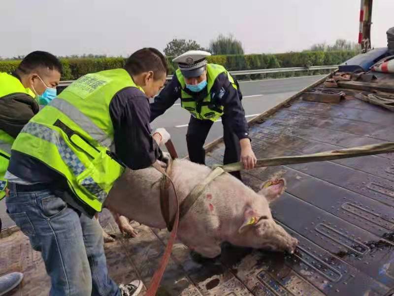 10月23日上午8时许,河南省高速交警七支队指挥室接到报警称:在连霍高速657公里南半幅,有一头猪行走在应急车道上。七支队民警黄永洪、杨昊楠带领辖区救援队迅速驱车赶往报警地点。