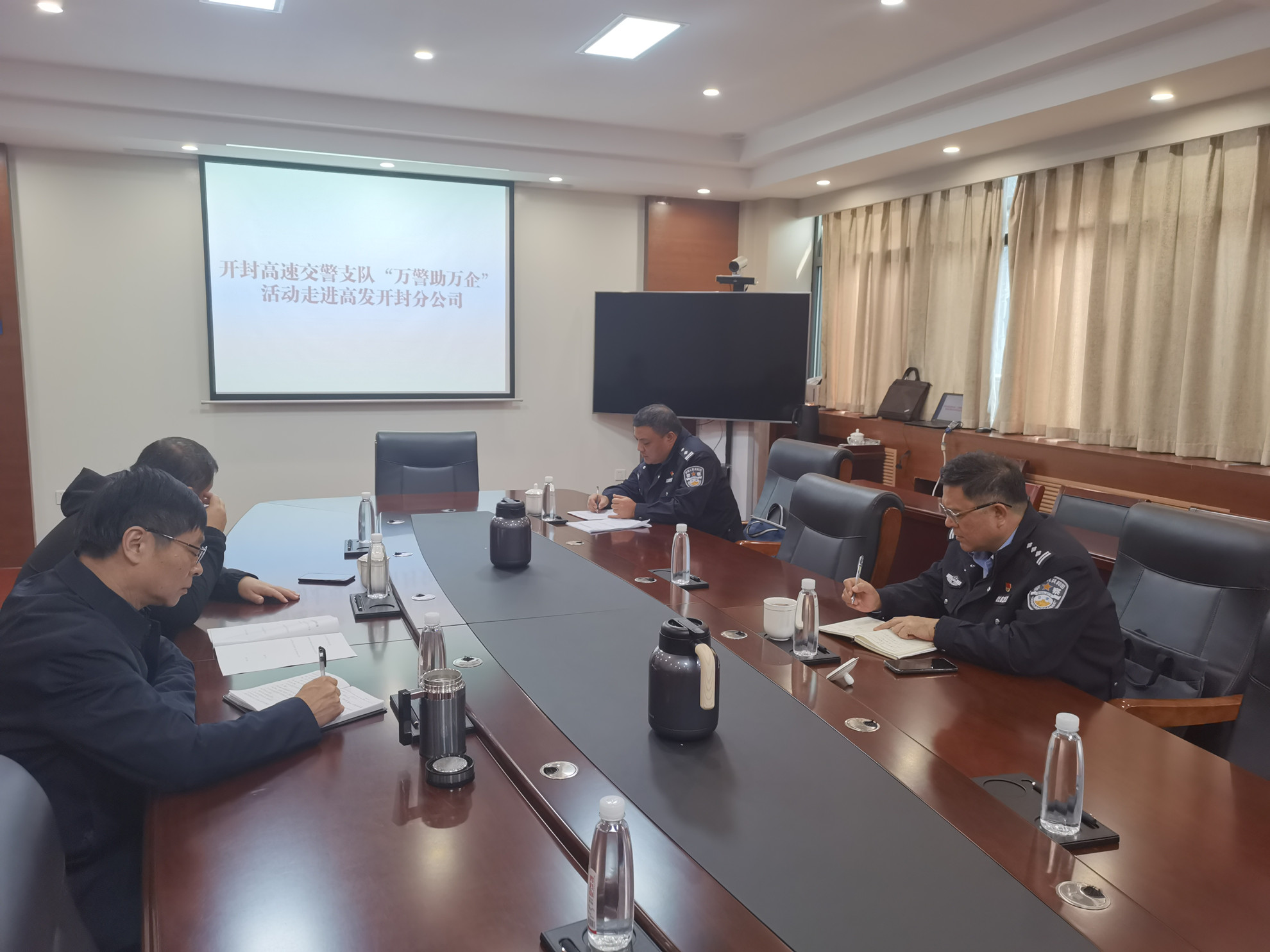 随后,在会议上支队领导与企业负责人交流,询问企业对于运营期间涉及交通安全的问题,并及时沟通联系,确保企业正常运营秩序。最后,在会上我队领导再三叮嘱企业负责人,切记安全运营大于天,必要时一定要定时提高员工的安全防范意识,开设安全生产教育宣传大讲堂,做到警民携手,共同守护企业的健康,方可持续发展。
