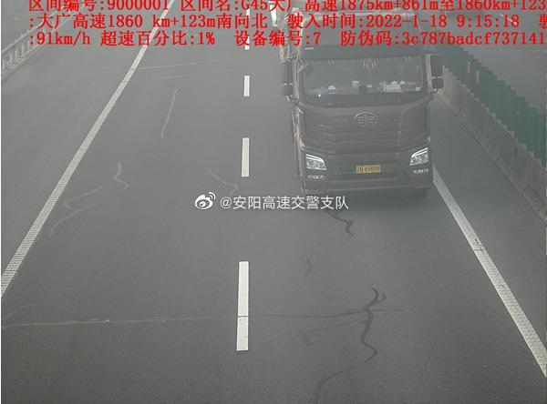 #文明交通•安全伴您行# 【违法曝光台】 2022年1月18日09时15分,辽NV9898的大型货车在大广高速1875公里861米至大广高速1860公里123米处实施驾驶中型以上载货汽车在高速公路上行驶超过规定时速未达20%的违法 ...