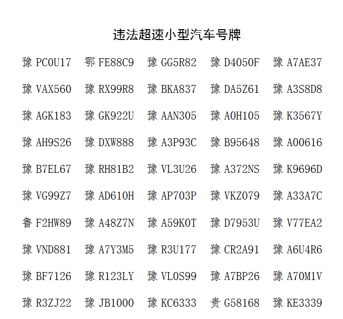 “十次事故九次快”,超速行驶是安全行车的最大安全隐患,为预防交通事故,许昌市公安局交通管理支队第二高速公路执勤大队集中曝光一批违法超速车辆,希望广大驾驶员朋友们进一步提高交通安全意识,自觉做到守法出行,安全出行!
