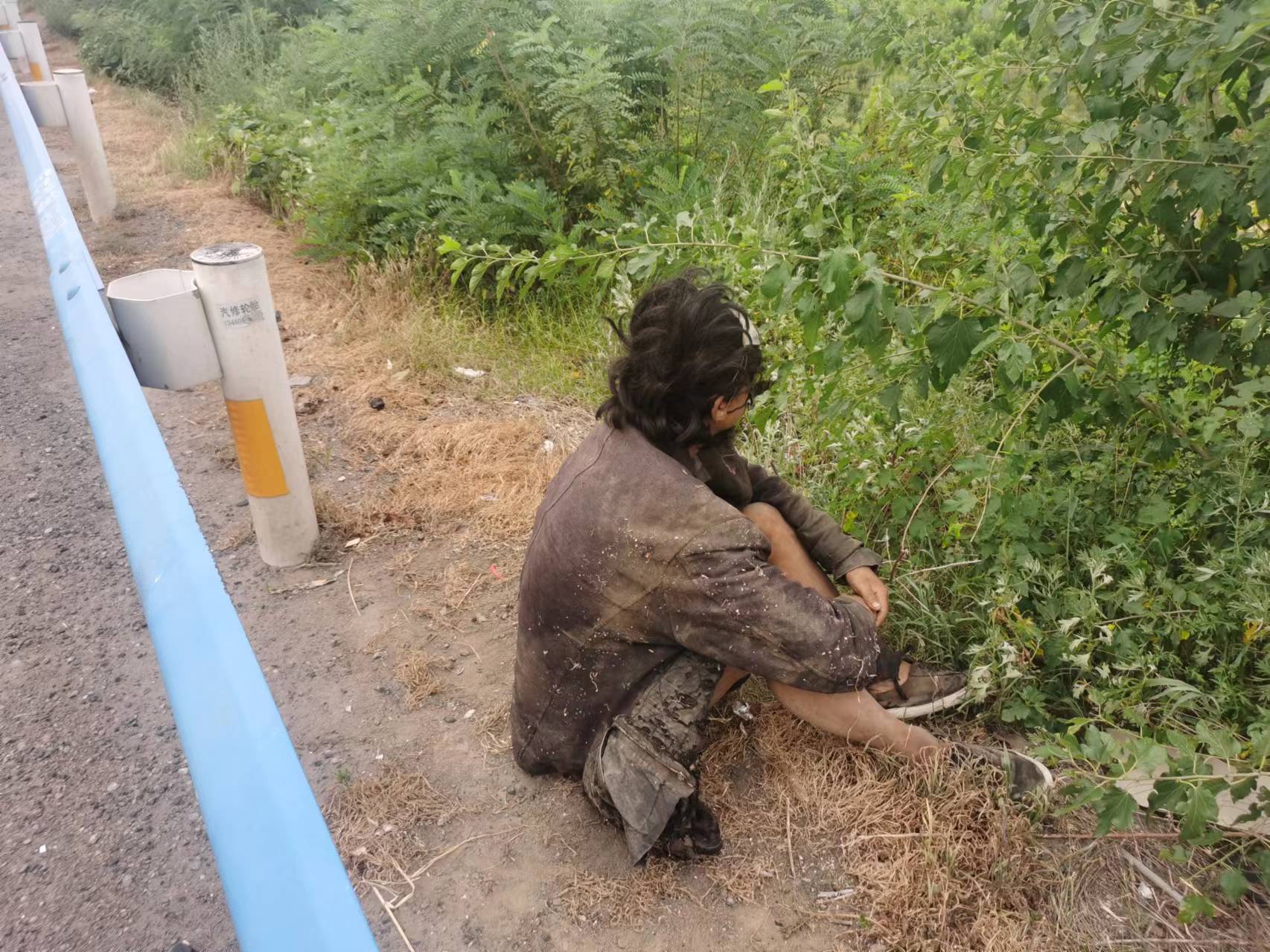 2022年8月27日,执勤民警巡逻至京港澳高速725公里处时,发现应急车道护栏外躺着一个人,民警立即下车查看情况。