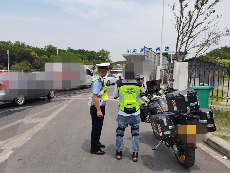 2025年6月2日11时32分,郑州交警高速二支队案侦大队大队长张琛义带队在新郑西收费站执勤时,发现一位驾驶员骑着一辆摩托车准备上高速行驶,民警迅速对其进行劝导。
