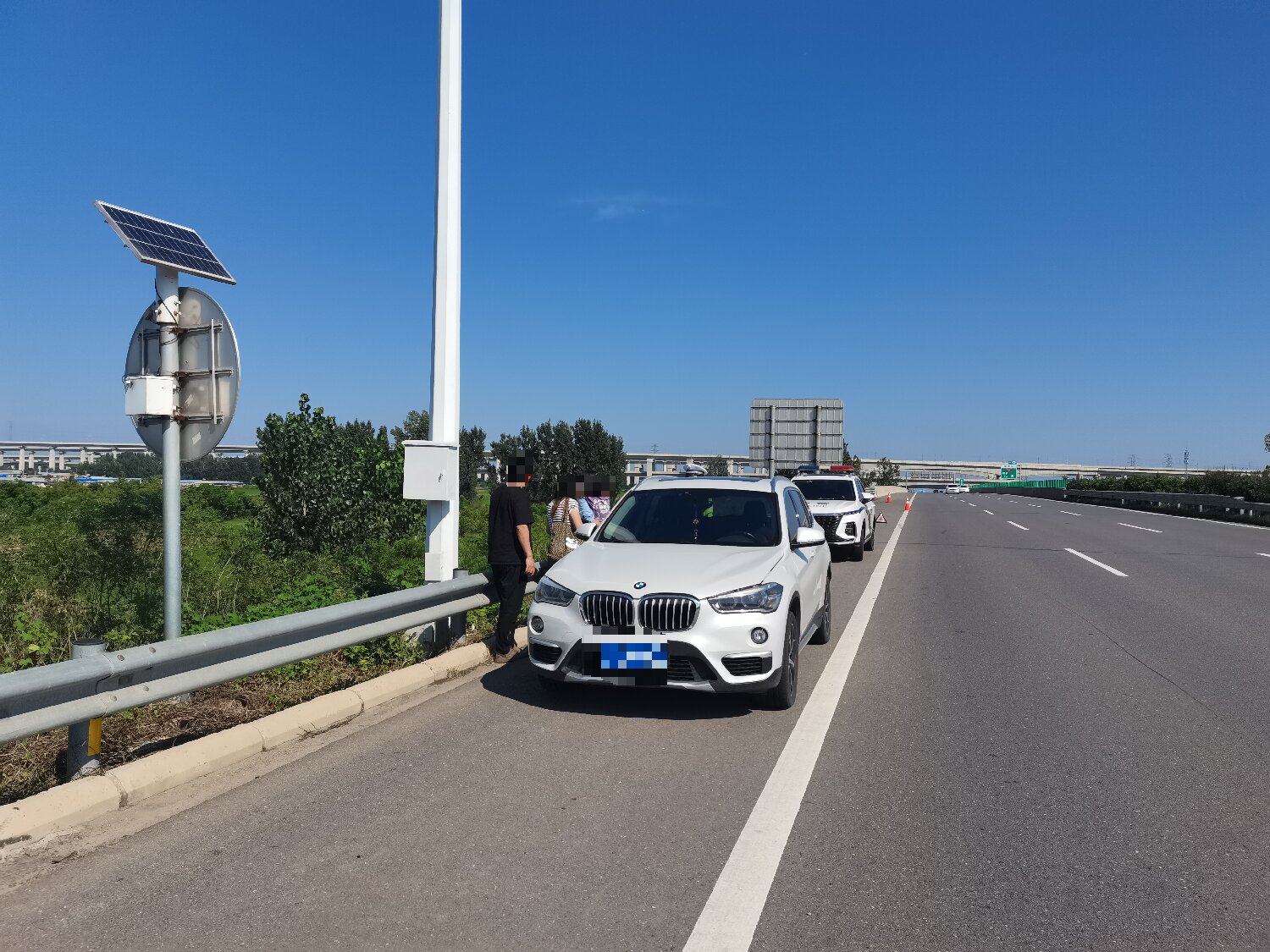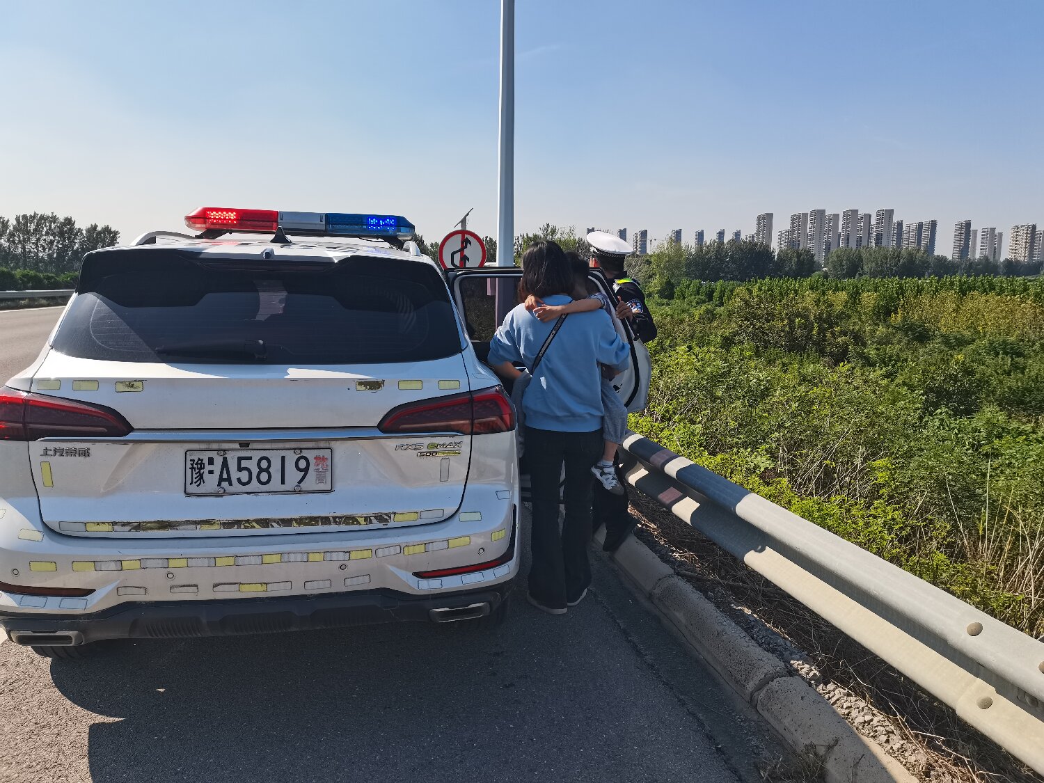 经了解,驾驶人赵某带家人来郑州游玩,在高速公路行驶过程中车辆突然发生故障无法继续行驶。民警了解情况后,第一时间向支队指挥室汇报情况,请求安排拖车救援。因车上有两位幼童,民警决定先将车上的两位女士和两位幼童转运至前方约1公里左右的园博园收费站下站外广场等候,驾驶员赵某则在原地等待拖车实施救援。为确保安全,民警向驾驶员赵某叮嘱安全事项,随后便带领车上的两位女士和两位幼童先行到达园博园收费站。不久,驾驶员赵某在救援拖车的帮助下,与家人顺利汇合。