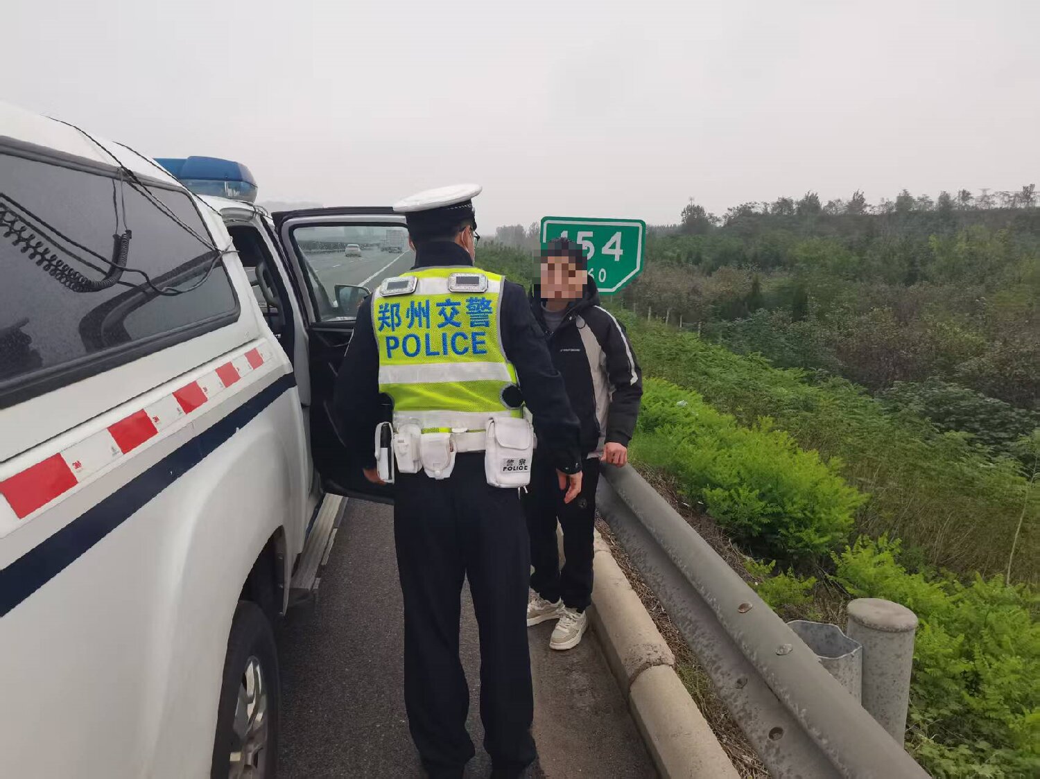 2025年10月12日7时20分,郑州交警高速二支队一大队民警朱琳接到指挥室指令,在商登高速西向东方向154公里附近,应急车道上站着一名行人,现场情况十分危险。民警接警后,迅速带队赶往现场。