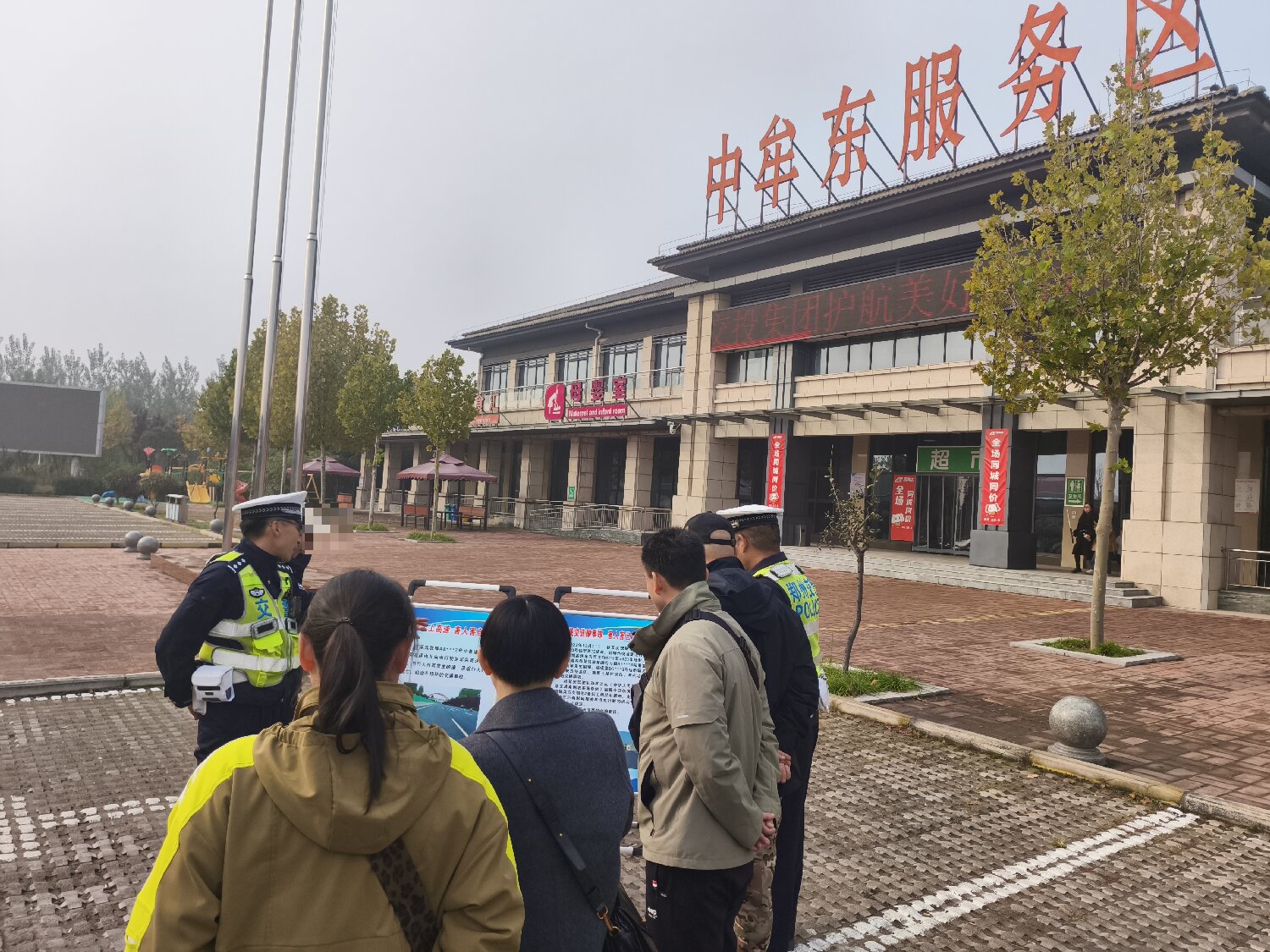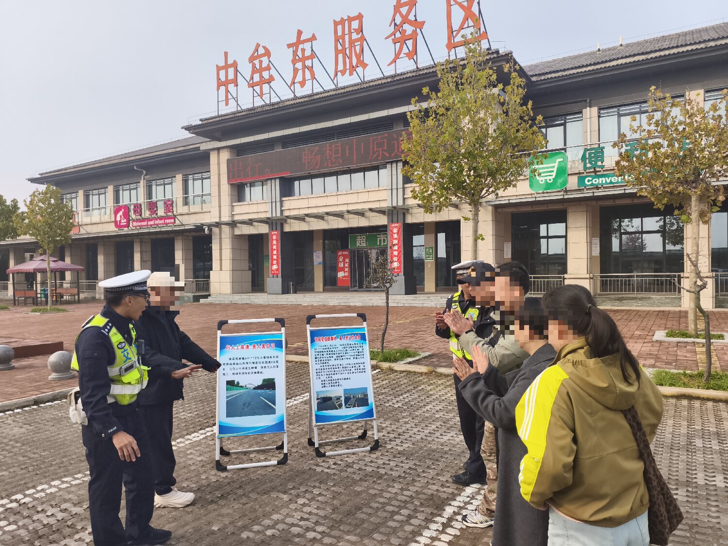 为了加大道路交通安全宣传力度,提高人民群众交通安全意识和风险防范能力,2025年10月26日上午,郑州交警高速二支队三大队大队长张磊带队来到安罗高速中牟东服务区,就地开展道路交通安全宣传活动。