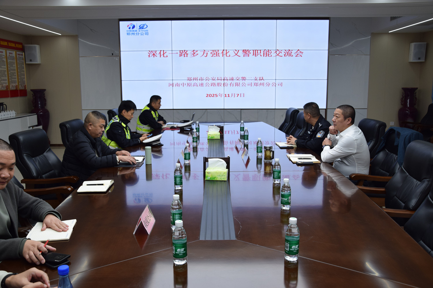2025年10月7日,正值立冬节气,寒意初显,恶劣天气进入高发期。为切实提升高速公路应对极端天气和大流量通行的综合管控能力,保障群众安全顺畅出行,郑州交警高速二支队副支队长詹迪带队,组织支队技术骨干一行赴中原高速郑州分公司,开展“深化一路多方强化义警职能”实战经验交流会。双方围绕交通治理重点难点、恶劣天气应急处置、高速分流疏导预案、安全防护措施及提升通行效率等核心议题展开深入探讨,共商协同治理新举措,共绘平安高速新蓝图。