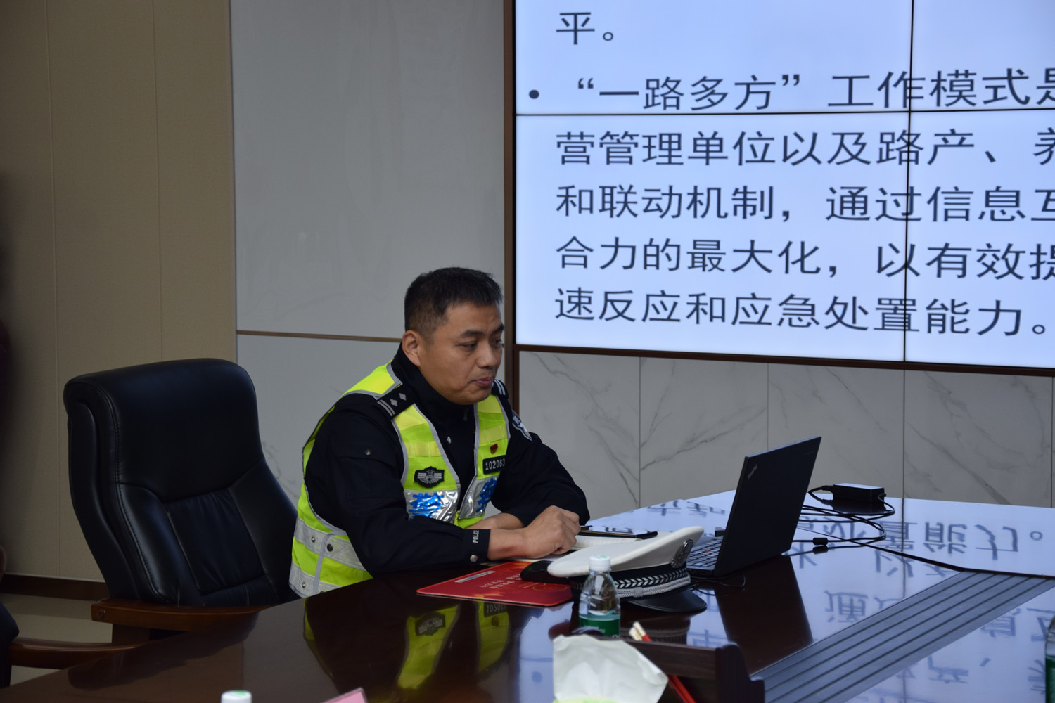 会议伊始,副支队长詹迪强调,当前正值秋冬交替之际,雨雾冰雪等恶劣天气频发,加之节假日车流叠加,高速公路保通保畅压力持续增大。唯有深化“一路多方”联勤联动机制,推动警企协同向实战化、精细化、智能化迈进,才能有效应对复杂多变的交通形势。民警指出,高速公路的安全畅通不仅是交通管理的底线要求,更是服务民生、优化营商环境的重要体现,警企双方必须以“时时放心不下”的责任感,主动作为、协同发力,把问题解决在群众出行之前。