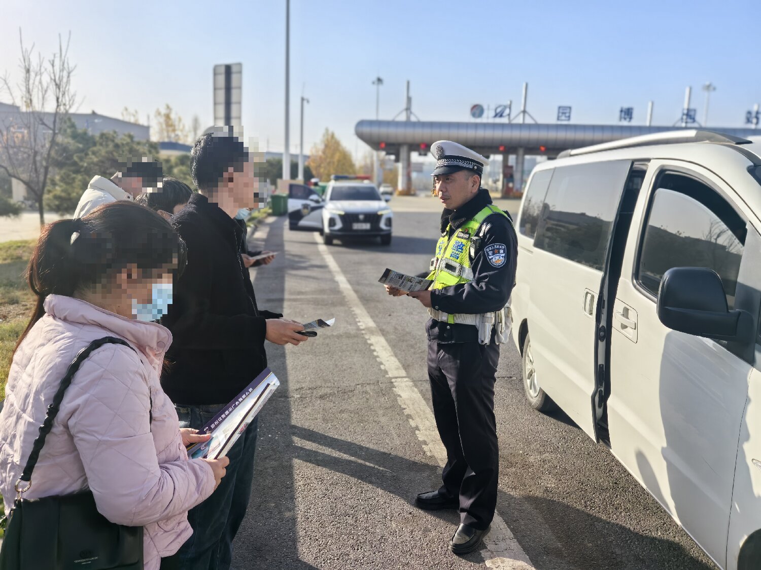 “师傅,要保持安全车距,这次轻微事故就是提醒咱们时刻绷紧安全弦!”在商登高速园博园收费站等重点站点,民警们将执法现场变成“流动课堂”。面对过往车辆,民警通过设立宣传展台、悬挂主题横幅、发放宣传手册等形式,开展“面对面”普法宣传。宣传资料紧扣高速出行需求,涵盖不占用应急车道、规范使用安全带、错过出口不倒车等核心知识点,让司乘人员在等候通行的间隙就能学到实用知识。