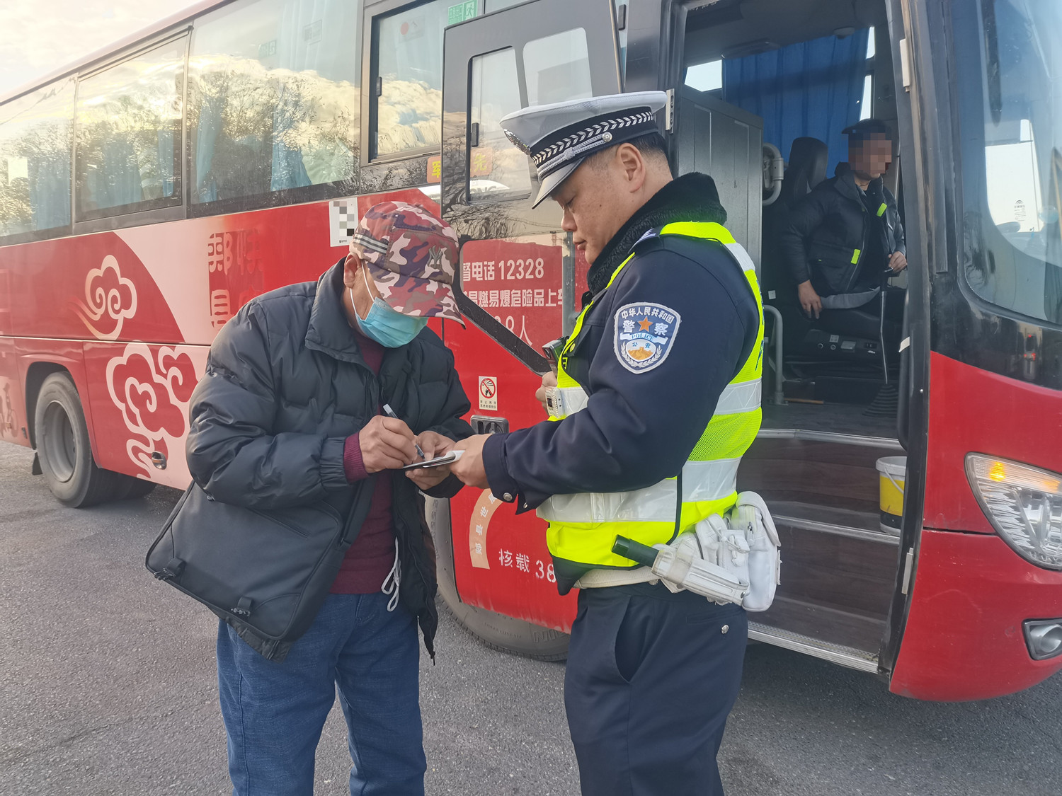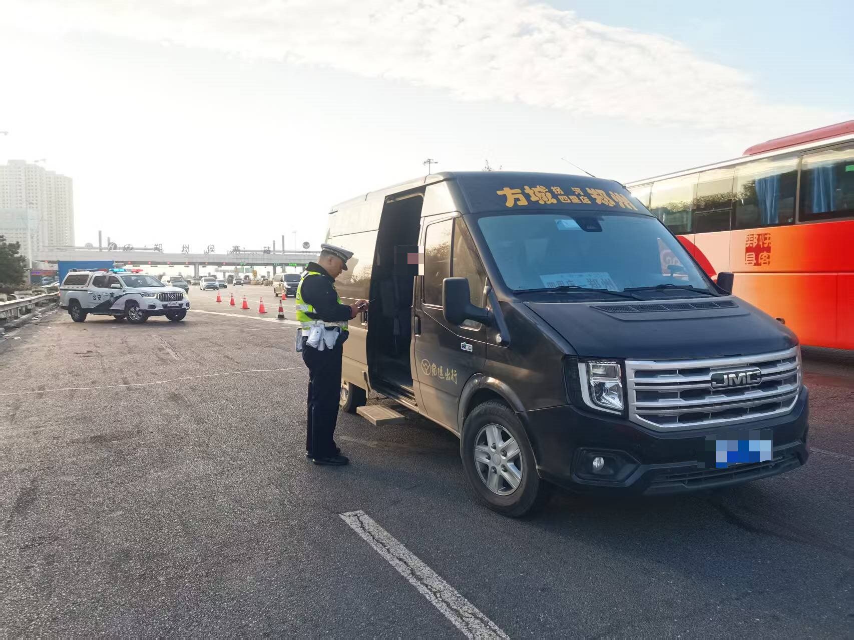 2025年12月4日上午10时许,郑州交警高速二队二中队指导员付珂带队在郑栾高速侯寨收费站开展安全带专项治理。检查过程中,先后发现豫DQ***5大型公路客运车辆、豫RF***6公路客运车,有2名乘客未系安全带。民警迅速上前,表明身份、出示证件,将乘客请下车。